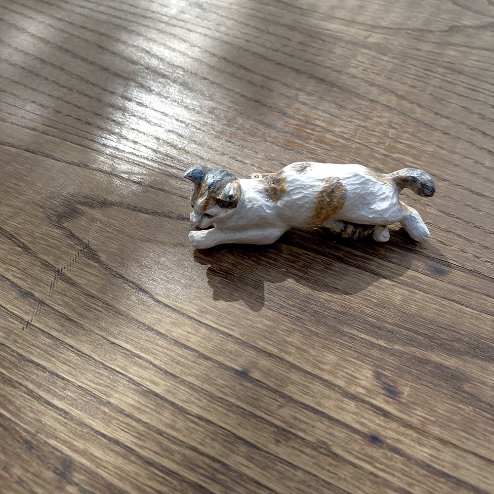木彫り猫 うちの子寝姿ブローチ(送料無料)