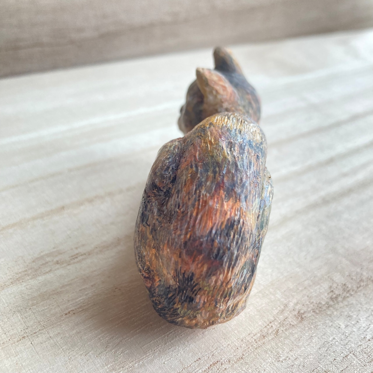 後ろ姿にも彫りと描画を加えることで、より「置き物らしさ」が際立ちます。